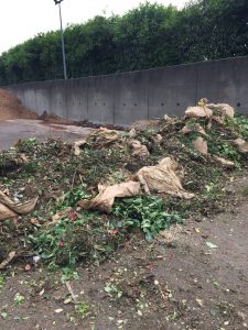 Quand les camions arrivent, ils passent une première fois le pont bascule. Il sert à se peser pour savoir le poids des déchets verts. Ils repassent de nouveau après avoir déchargé leur contenu. On enlève le poids qu’on avait au début moins le poids du camion : on connait alors le poids des déchets. Une fois le camion parti, les déchets verts et autres sont triés.
