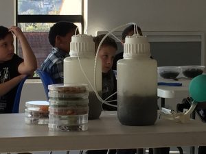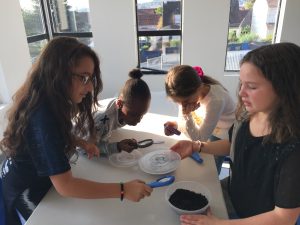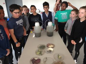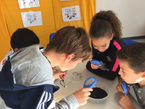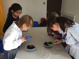 Atelier sur le compostage : nous avons classé les aliments à composter puis nous avons observé les petites bêtes à la loupe. Avec le compost, on peut aussi fabriquer du « biogaz ».