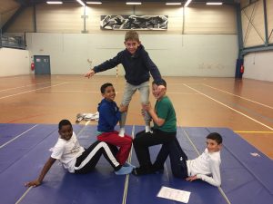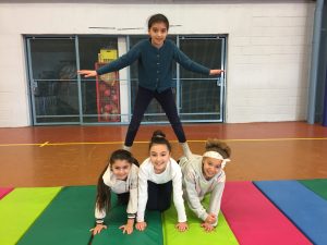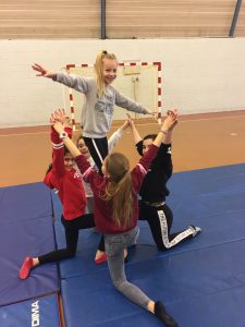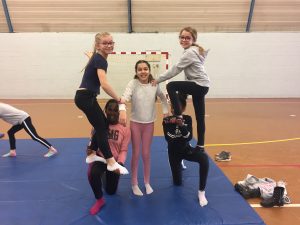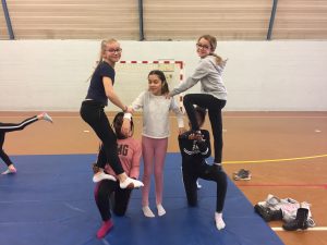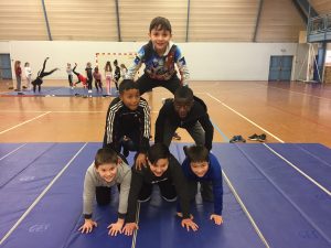 En sport, nous nous sommes entraînés à faire des figures seul puis en groupe. Nous devions faire une chorégraphie, c’était chouette, on s’est bien amusés…